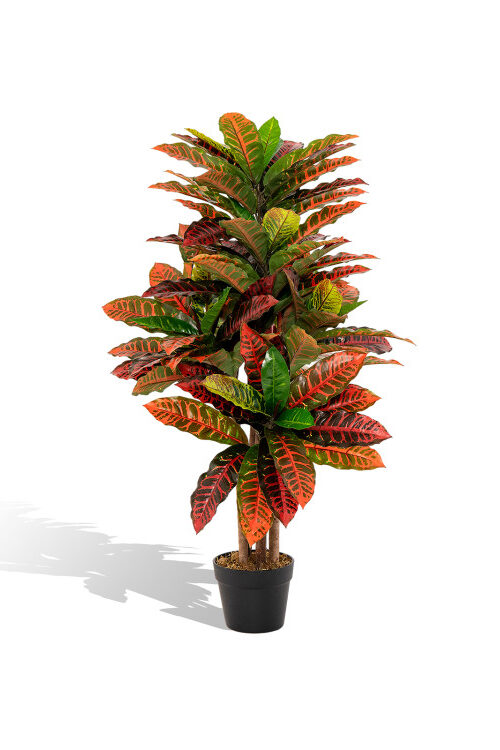 Artificial Croton Plant 40 Inch Tall Fake Croton Palm Tree with Colorful Variegated Leaves and Pot