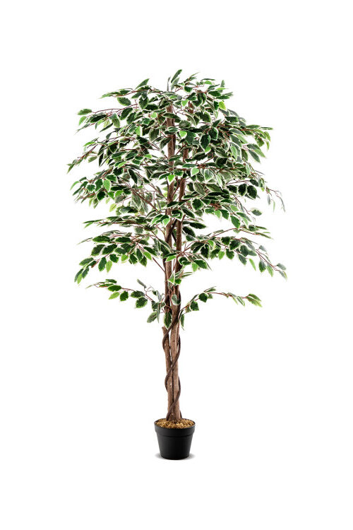 Artificial Ficus Tree Tall Faux Indoor Plant with 1008 Leaves Nursery Pot and Dried Moss